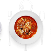 - Served with pasta, garlic bread and side salad
